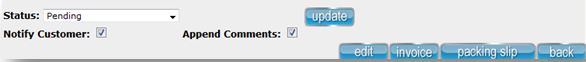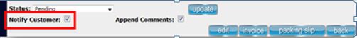14) Change the status again to "Shipped". Note: Changing the status is important as a form of communication not only to yourself, but to your colleagues and your customers if you choose to notify them 15) Keep the Notify Customer box checked (if you want the customer to receive an email notification of the new status/comments) and click Update. 16) Now the order is finished. If you click Back you can see the status change on the orders page to "Shipped".